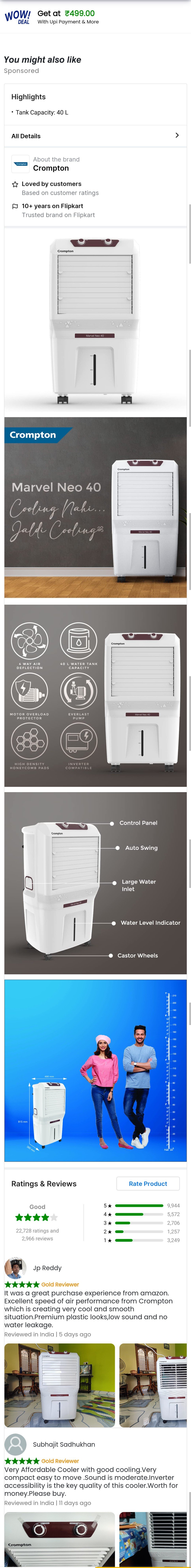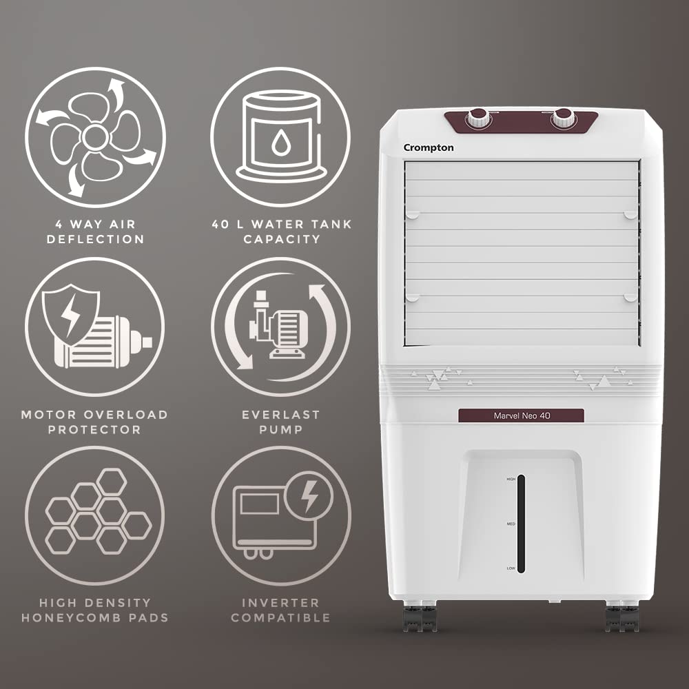 Crompton Marvel Neo Inverter Compatible Portable Personal Air Cooler (40L, White).