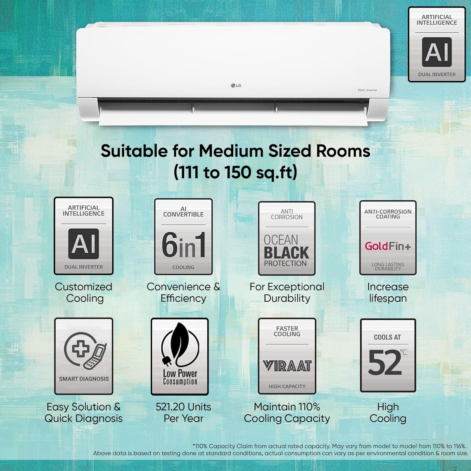 LG 1.5 Ton 5 Star DUAL Inverter Split AC (Copper, Al Convertible 6-in-1 Cooling, 4 Way, HD Filter with Anti-Virus Protection, Faster Cooling & Energy Saving, 2024 Model, TS-Q19YNZE, White)